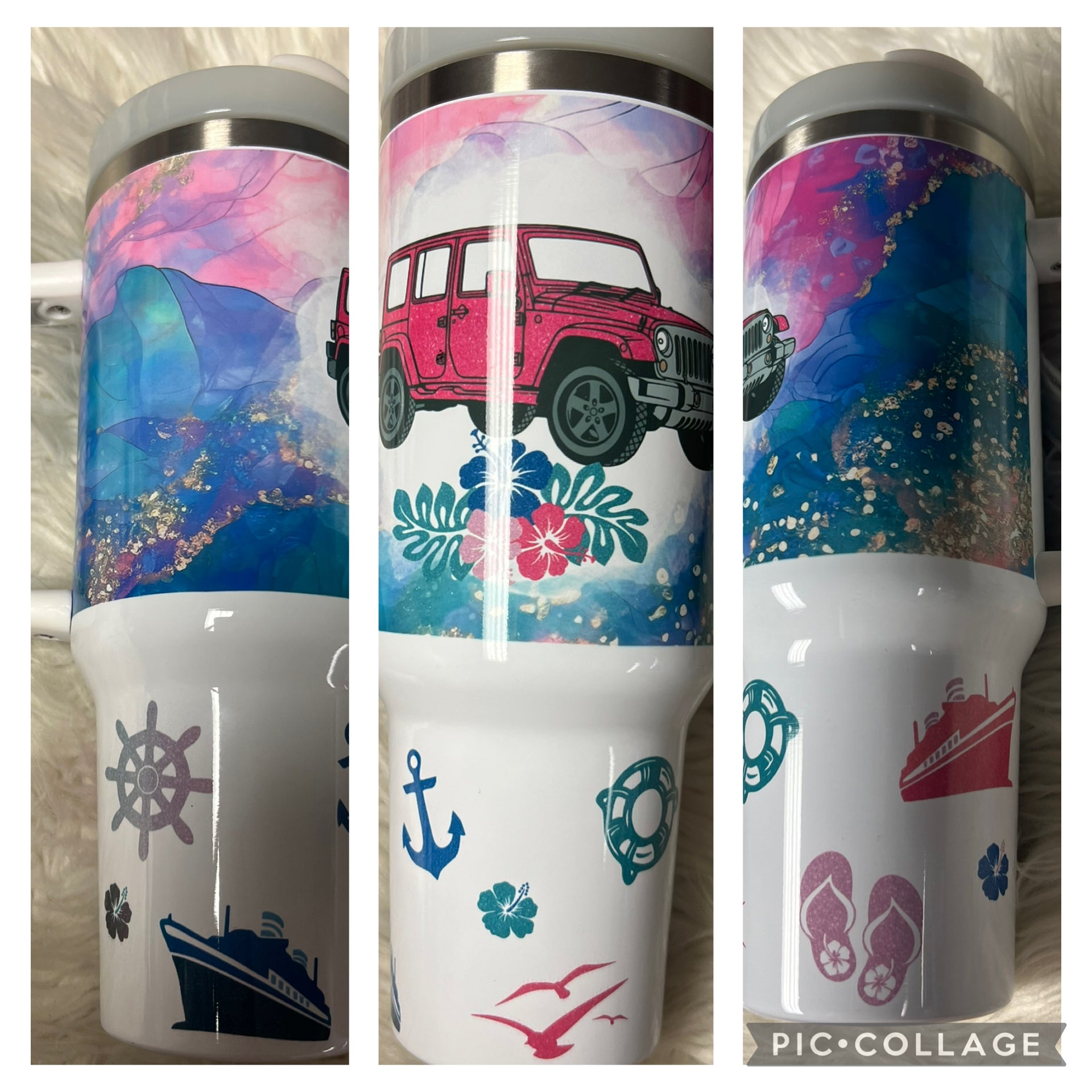Brand new 40 ounce stainless steel Tumblr with handle beachy cruise 4 x 4