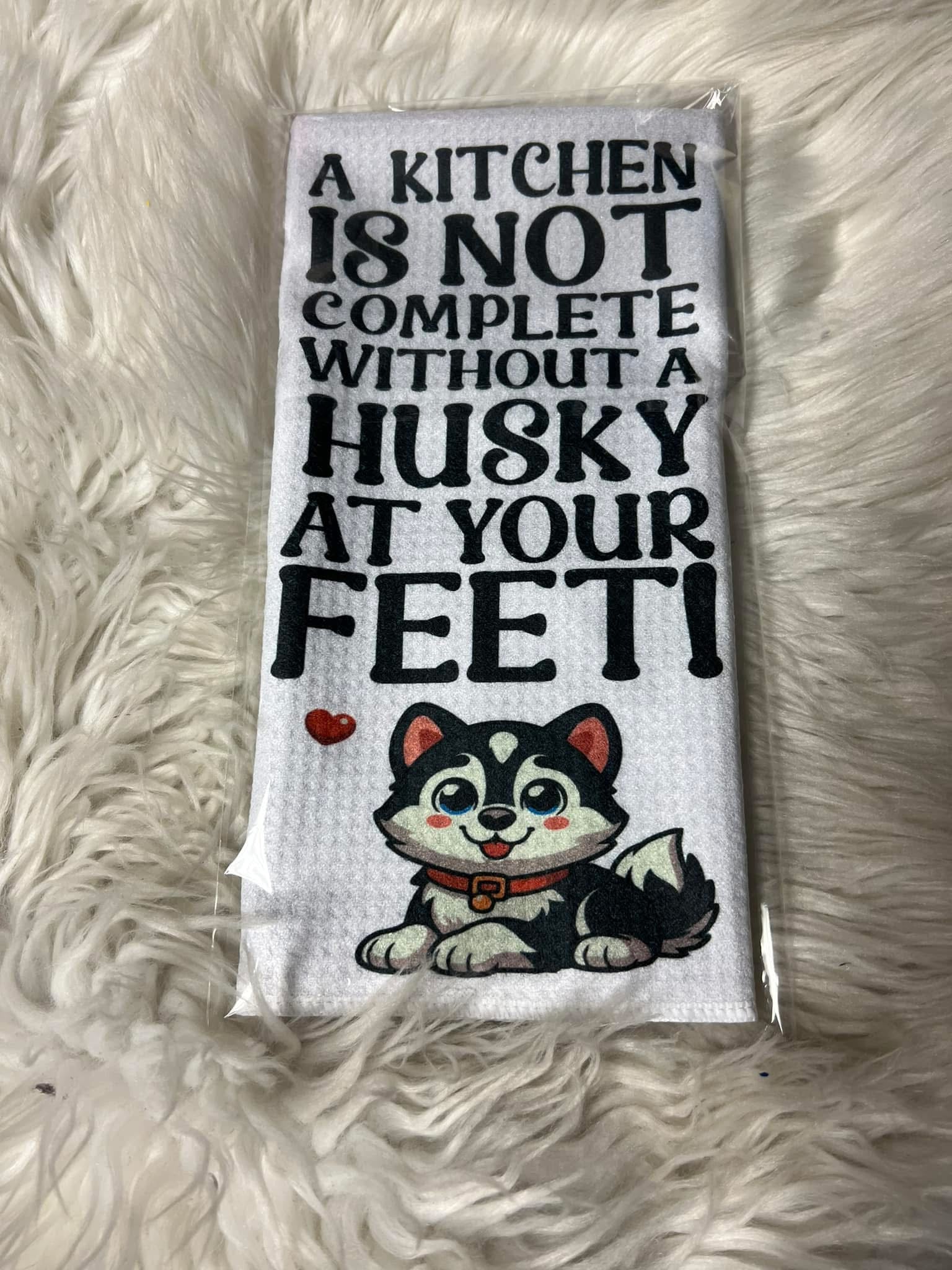 Decorative hand towel husky