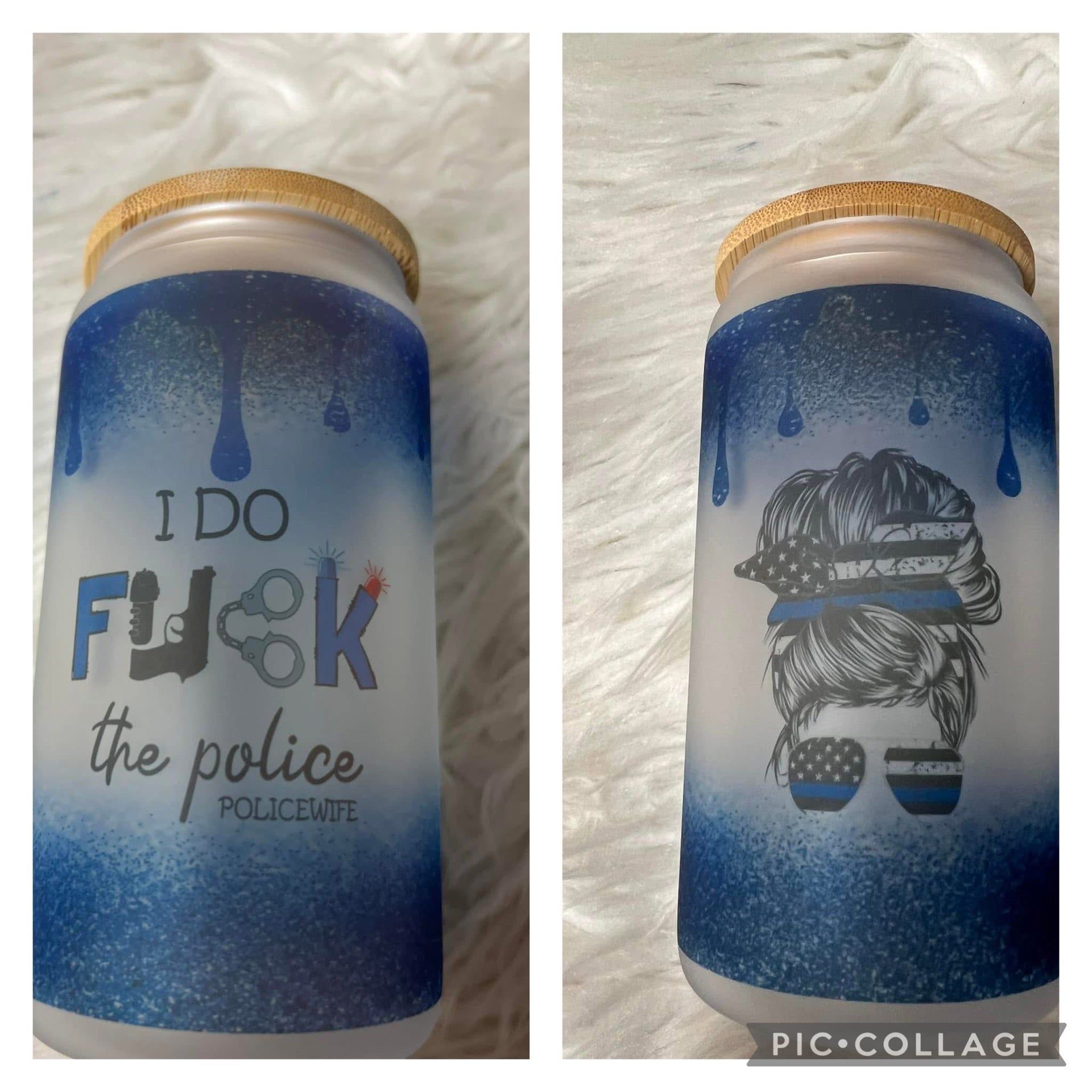 new 16 ounce glass cup with straw police wife
