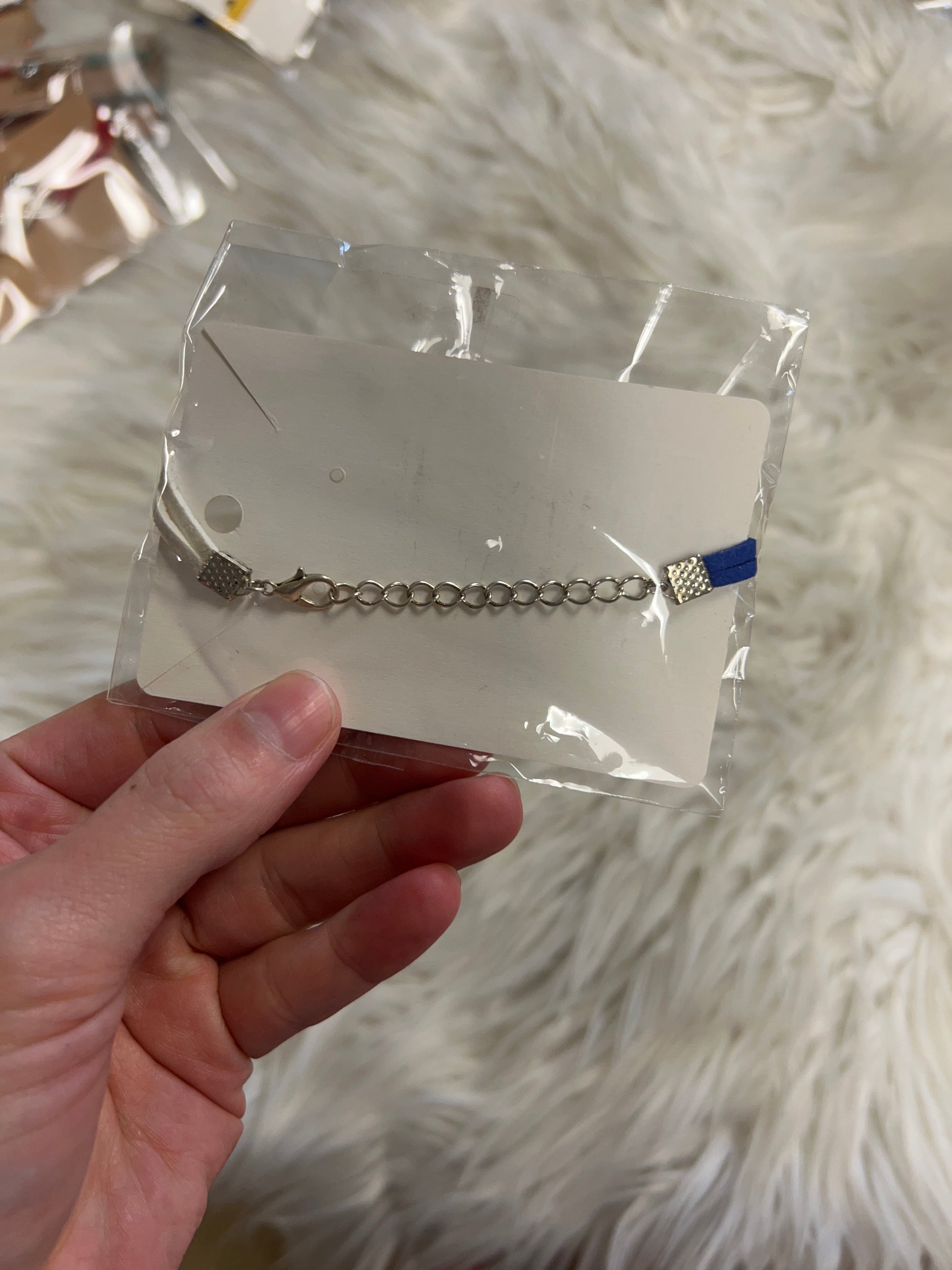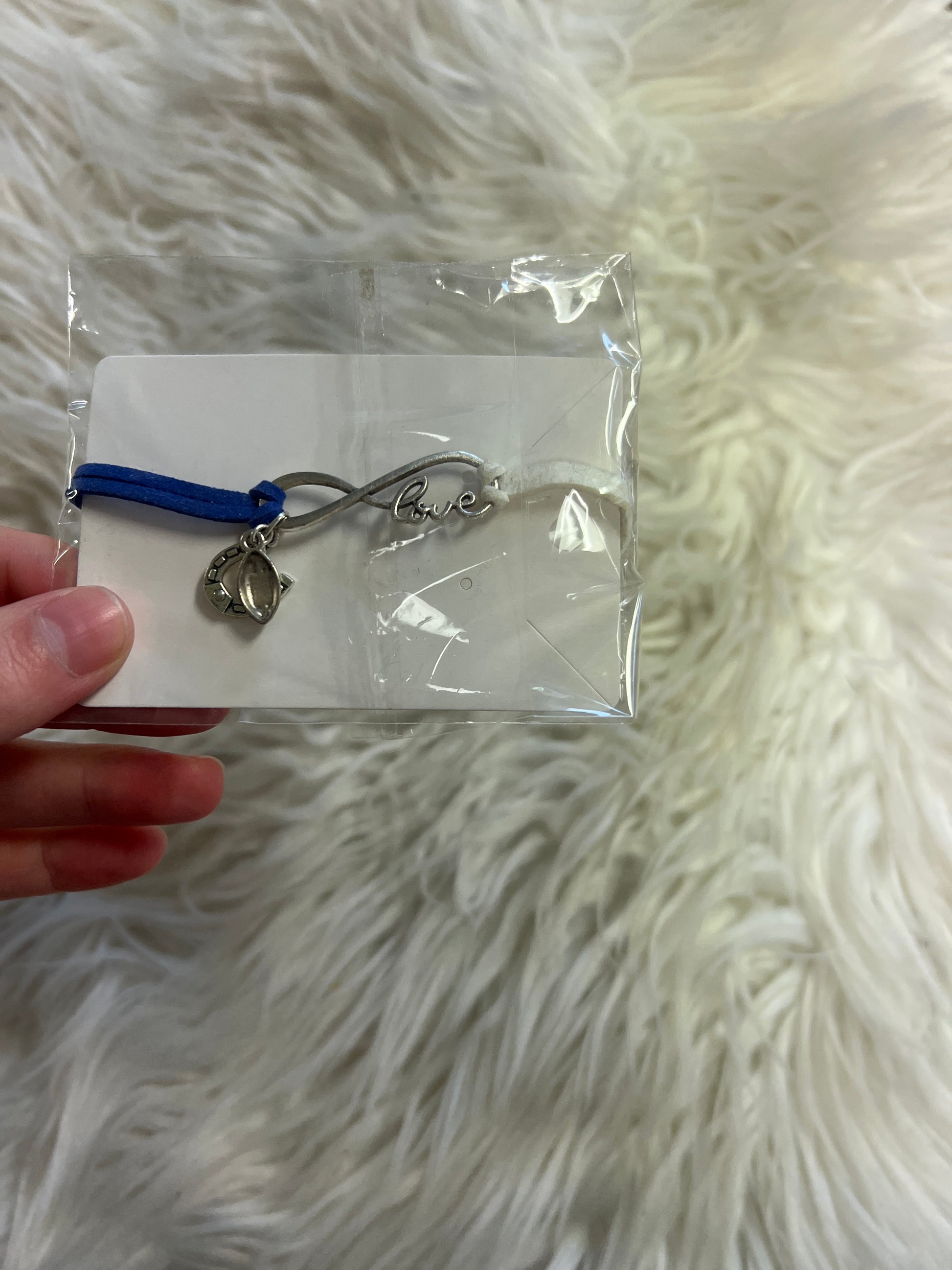 new bracelet blue and white football and horseshoe charm