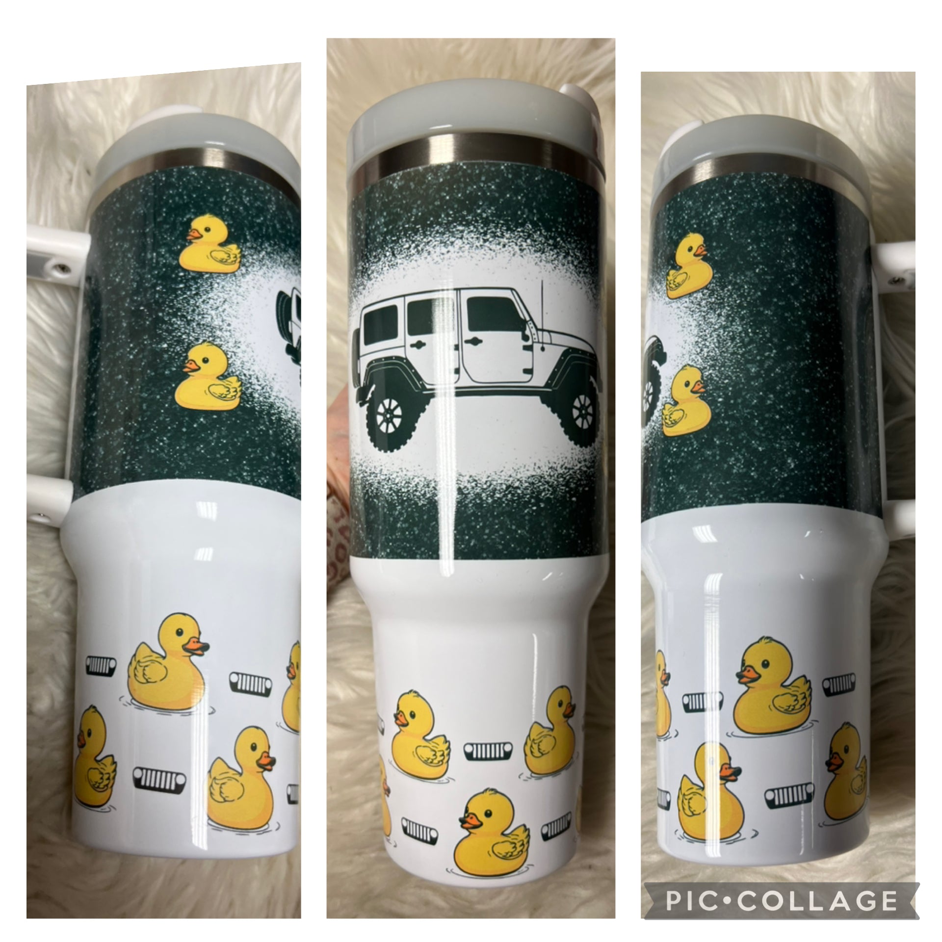 This 40 ounce metal Tumblr features a cute duck charm and straw topper. Perfect for duck lovers, it holds a large amount of liquid, making it great for travel or busy days. Stay hydrated in style with this adorable duck-themed Tumblr.