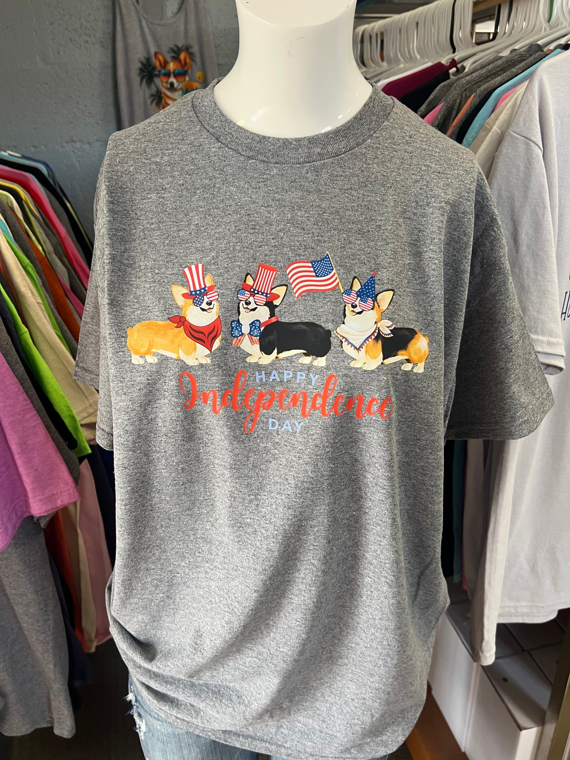 unisex Gilden adult T-shirts corgi Independence Day usa